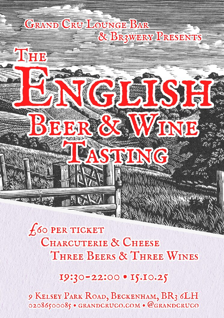 On Wednesday 15th October 2024, Grand Cru Lounge Bar and Br3wery come together for an evening dedicated to English beer and wine, and to the stories, history, and craft that make them so distinctive.